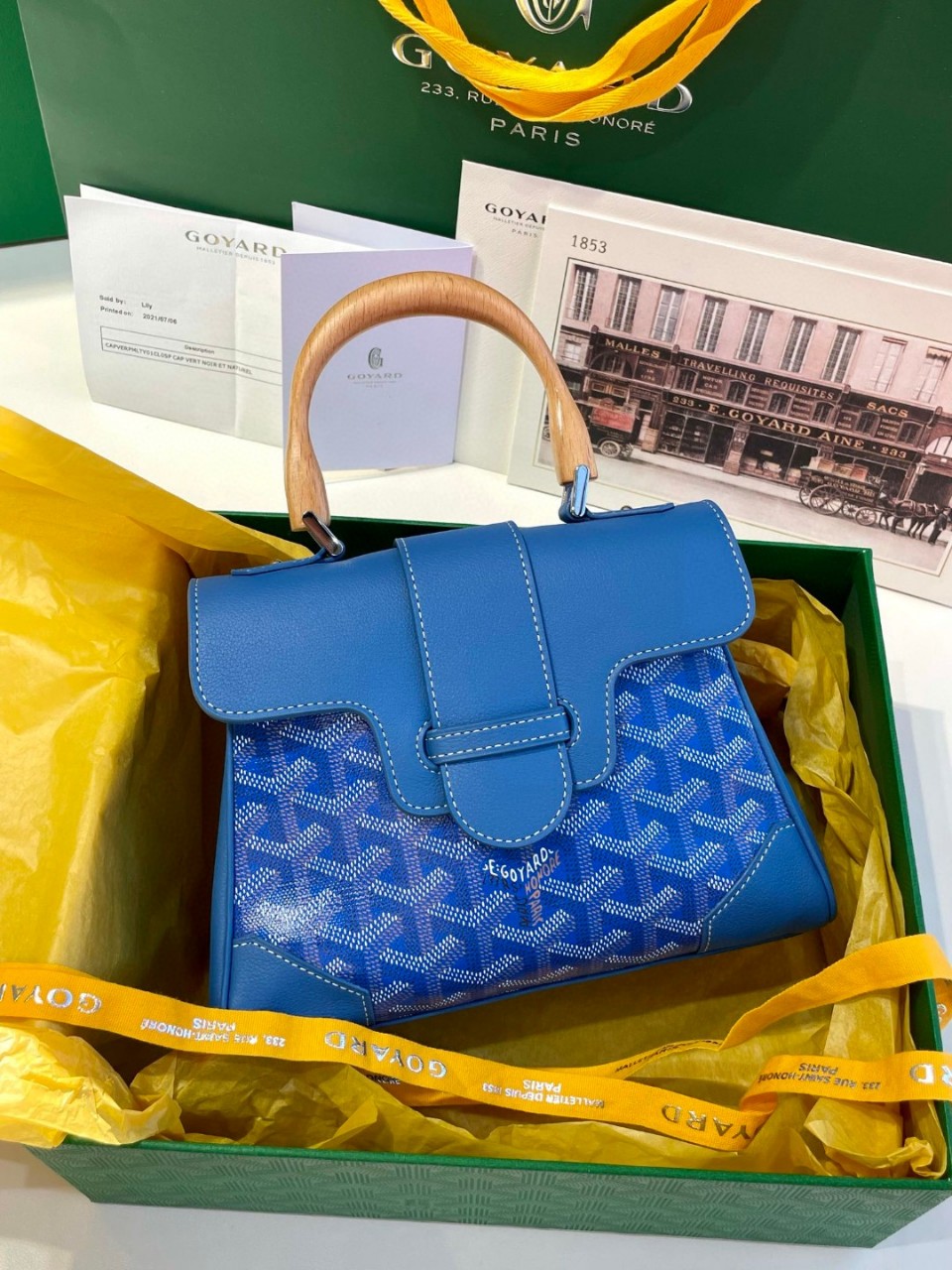 GOYARD 미니 사이공 (Mini Saigon)고야드 특유의 클래식한 패턴과우드 핸들이 포인트가 되는 아이코닉 모델입니다.작지만 존재감은 확실한 디자인으로데일리, 모임, 격식 있는 자리까지 모두 잘 어울립니다.---✔ 특징우드 핸들 + 유니크한 구조약 250g의 가벼운 무게탈부착 가능한 숄더 스트랩어떤 스타일에도 자연스럽게 매칭---✔ 소재외부 : 고야드 캔버스 + 가죽 트리밍내부 : 옐로우 소가죽 라이닝---✔ 사이즈21 x 14.5 x 9.5 cm---