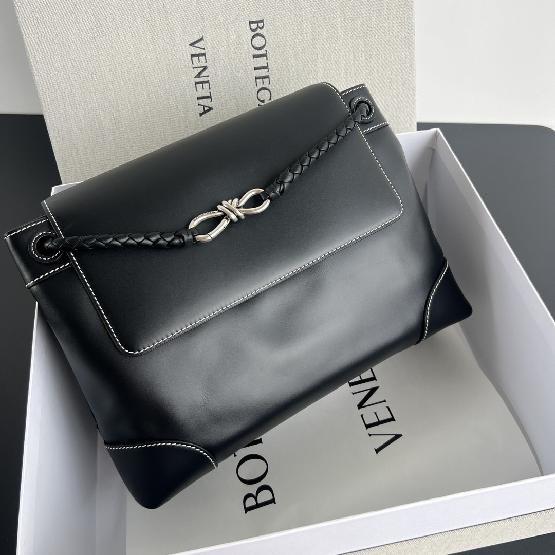 . 고급스러운 블랙 전가죽 소재로 완성된 프리미엄 남성 가방 . 은은한 광택감과 외부 스티치 디테일로 세련된 분위기 강조 . 보테가의 아이코닉 Knot 매듭 장식과 견고한 숄더 스트랩 적용 . 토트, 숄더, 크로스 등 다양한 연출 가능 . 노트북·서류·일상 소지품까지 수납 가능한 실용성