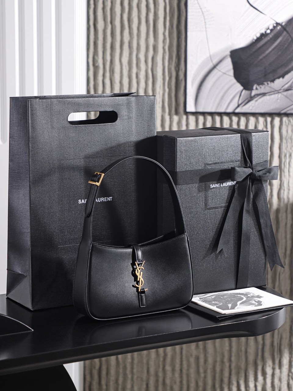 생로랑의 시그니처 호보백 라인인 Le 5 À 7의 미디엄 사이즈 모델, 포멀룩, 오피스룩, 데일리룩 모두에 어울리는 고급스러운 디자인