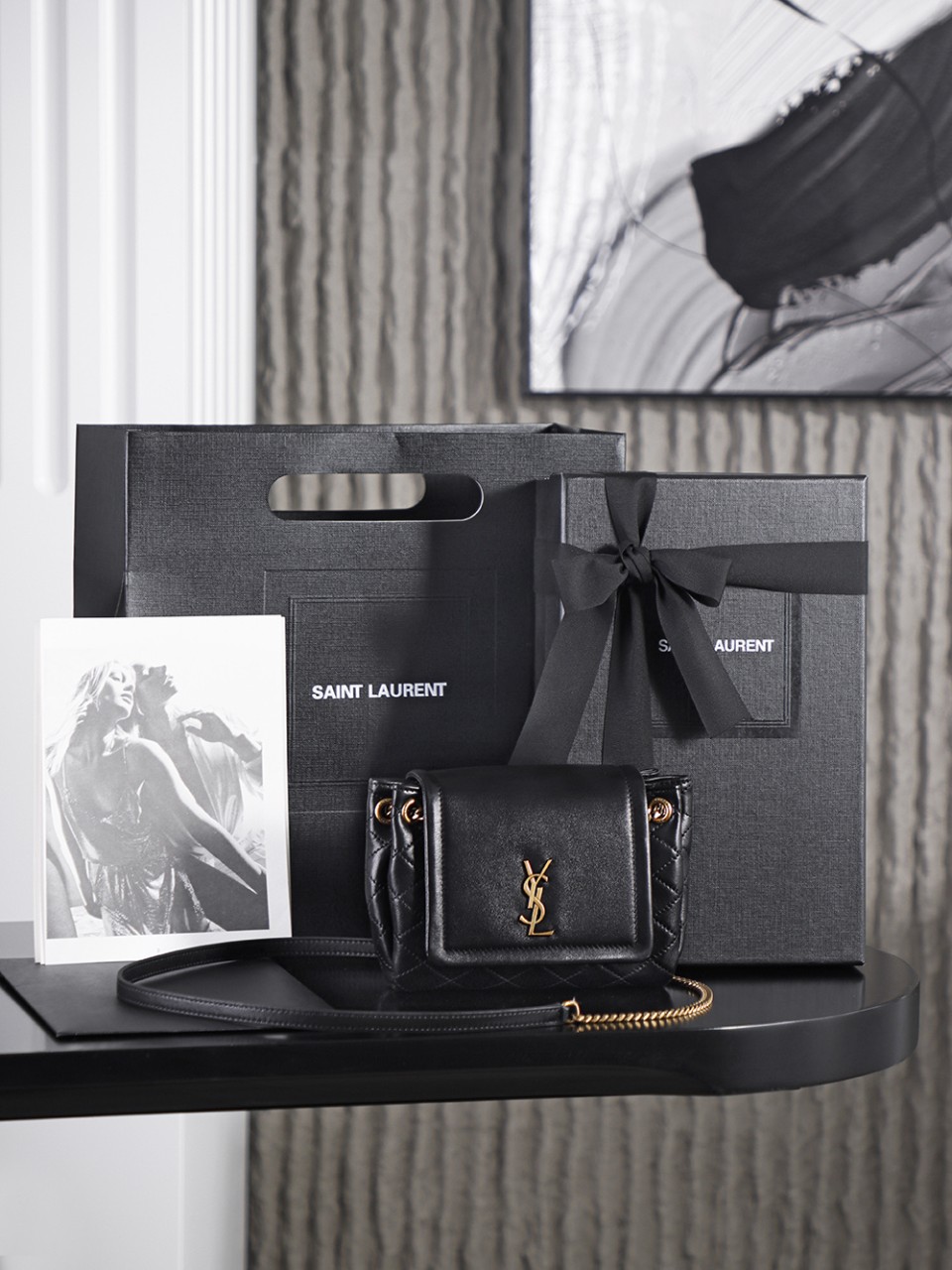 블랙 소가죽 소재에 골드 YSL 로고로 포인트를 준 세련된 디자인