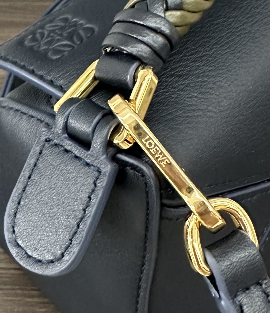 ◼ 상단 지퍼 클로저 + 브레이드 디테일 핸들 + 골드 톤 하드웨어 포인트