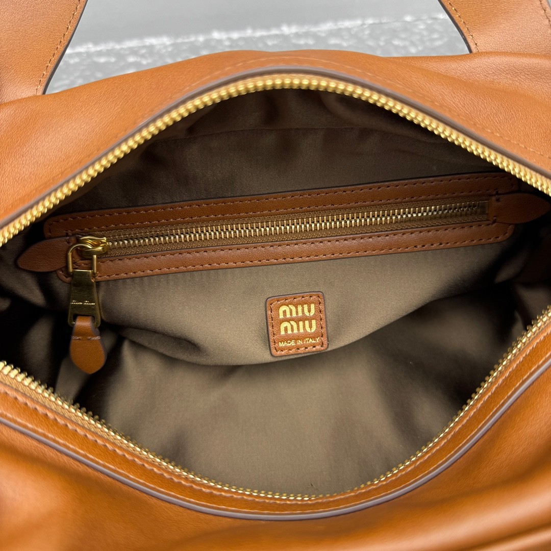 캐러멜 색상 가죽 + 빈티지 감성 ✨ “스포티하면서도 세련된 무드의 미우미우 아이코닉 핸들백”