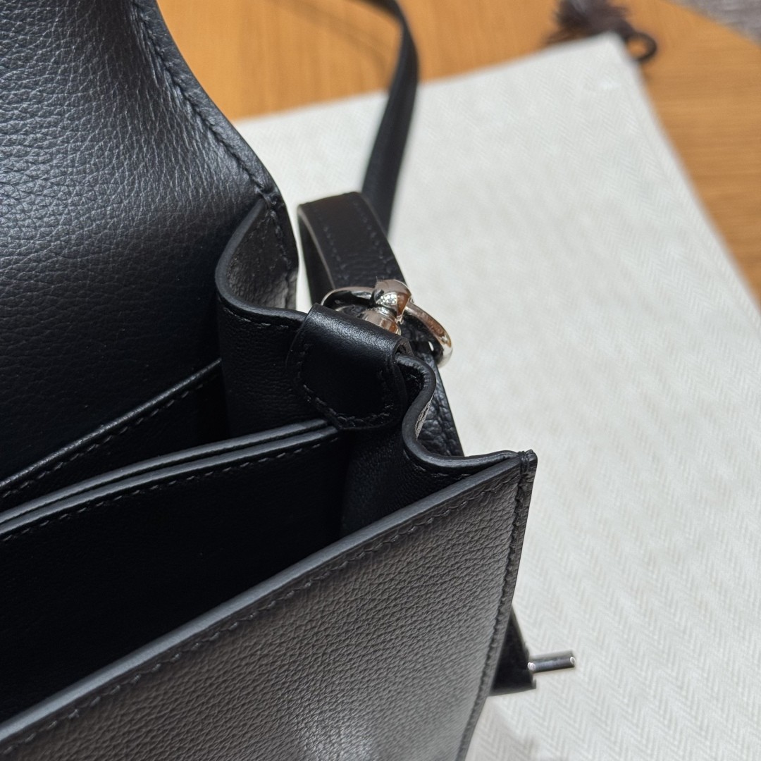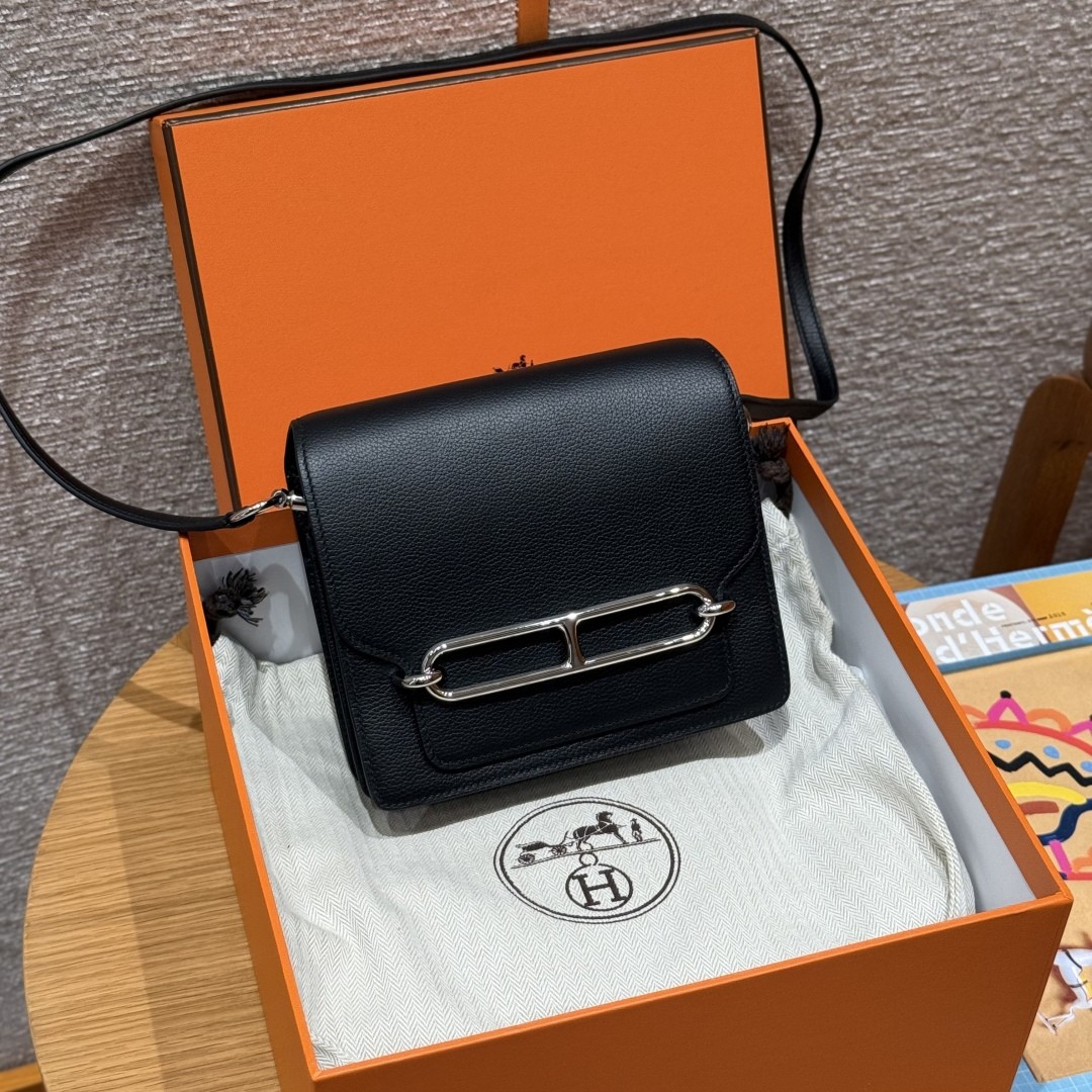 에르메스 시그니처 Roulis 18 미니 사이즈 크로스백 Evercolor calfskin → 부드럽고 균일한 질감, 세련된 매트한 마감 컬러: Noir (89) – 가장 모던하고 클래식한 블랙