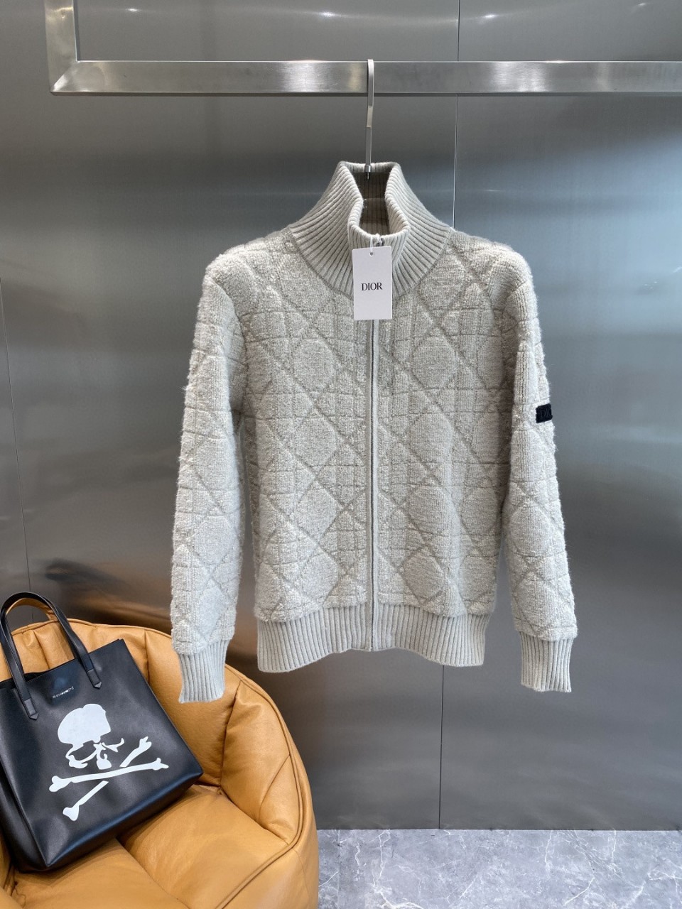 2025 SS 시즌 신상으로 공개된 디올 남성 울 니트 집업입니다. 입체적인 다이아 패턴 조직과 부드러운 울 텍스처가 합쳐져 착용 즉시 고급스러운 실루엣을 연출해주는 프리미엄 아이템입니다.