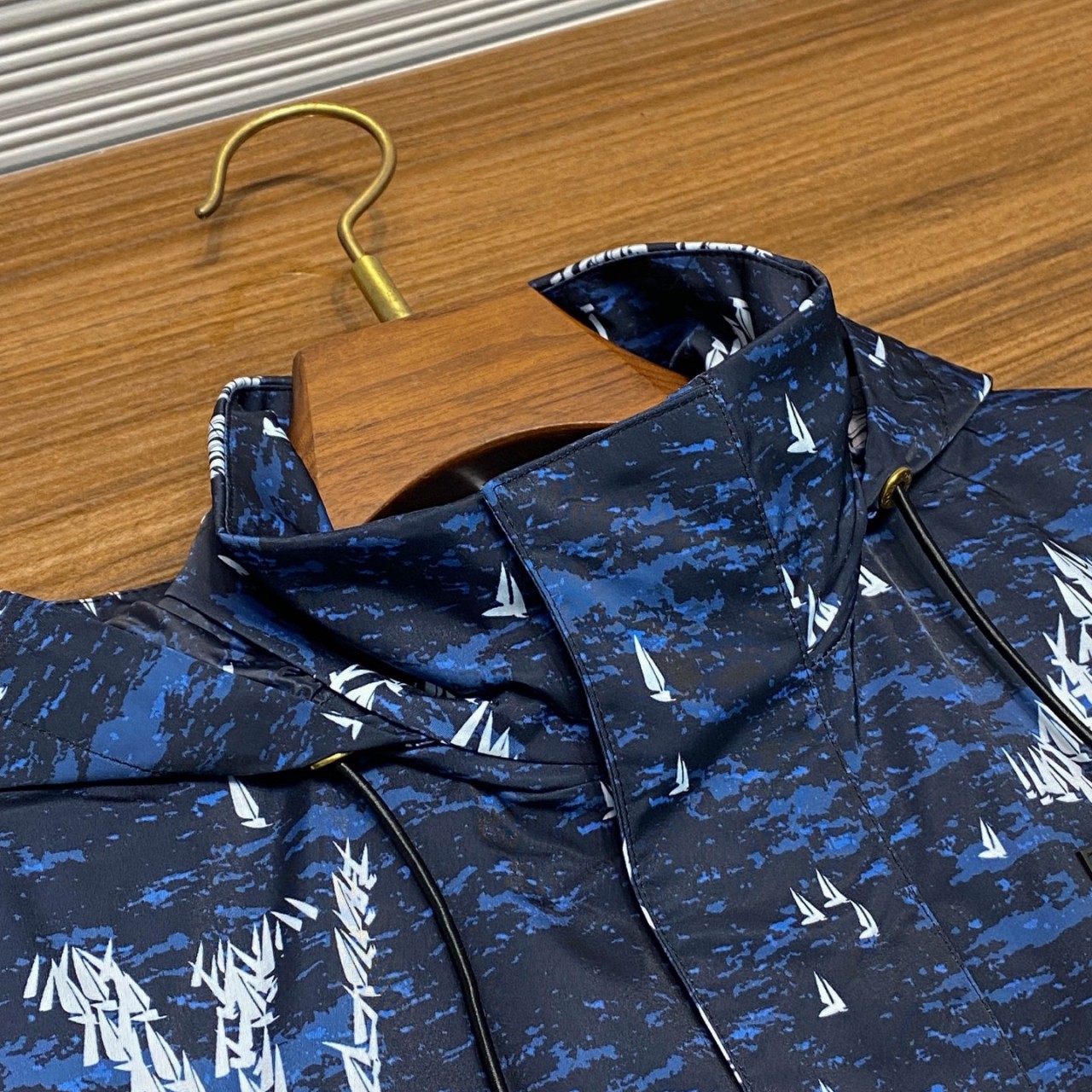 남성 요트 로고 패턴 수납식 후드 집업 점퍼.