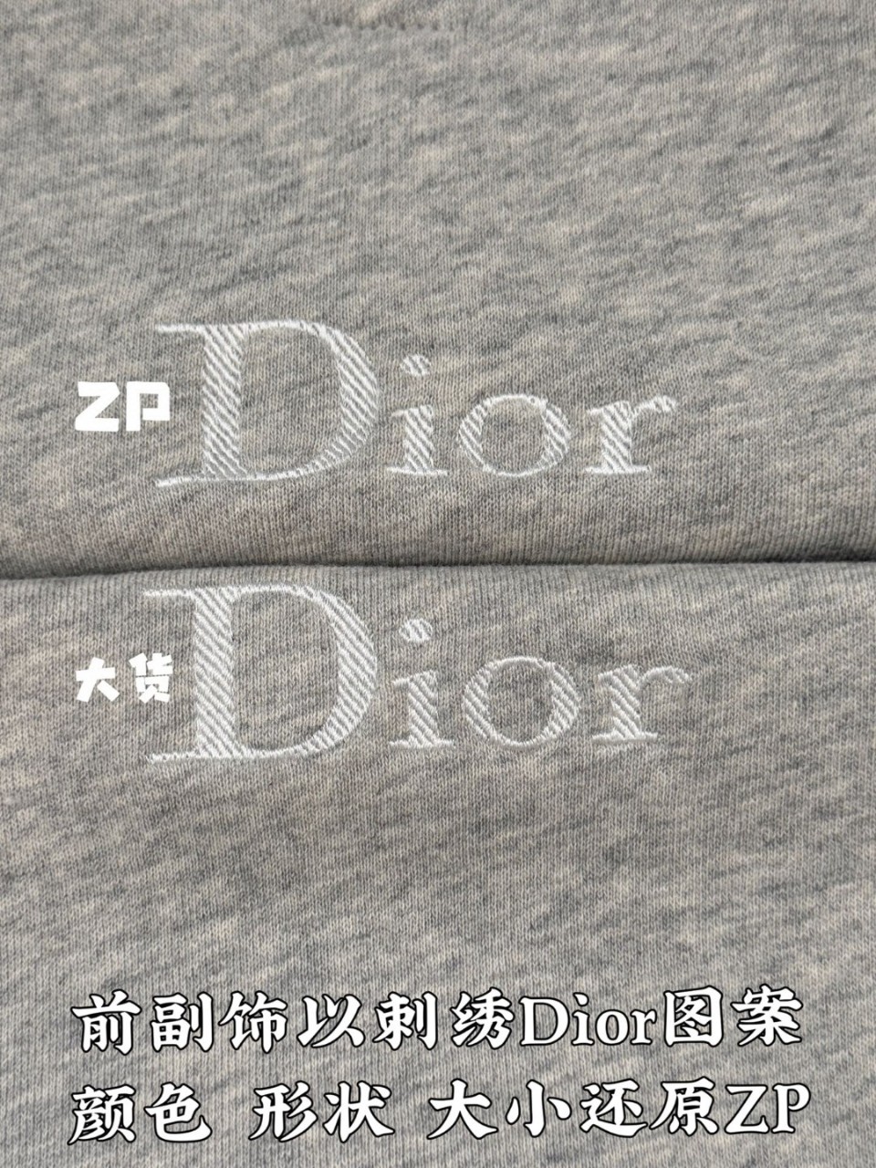 하이넥 반집업 디자인 전면 Dior 로고 자수 디테일 여유 있는 실루엣 안정감 있는 시보리 마감 클래식 그레이 컬러 심플하지만 확실한 존재감. 과하지 않으면서도 고급스러운 무드를 연출합니다.