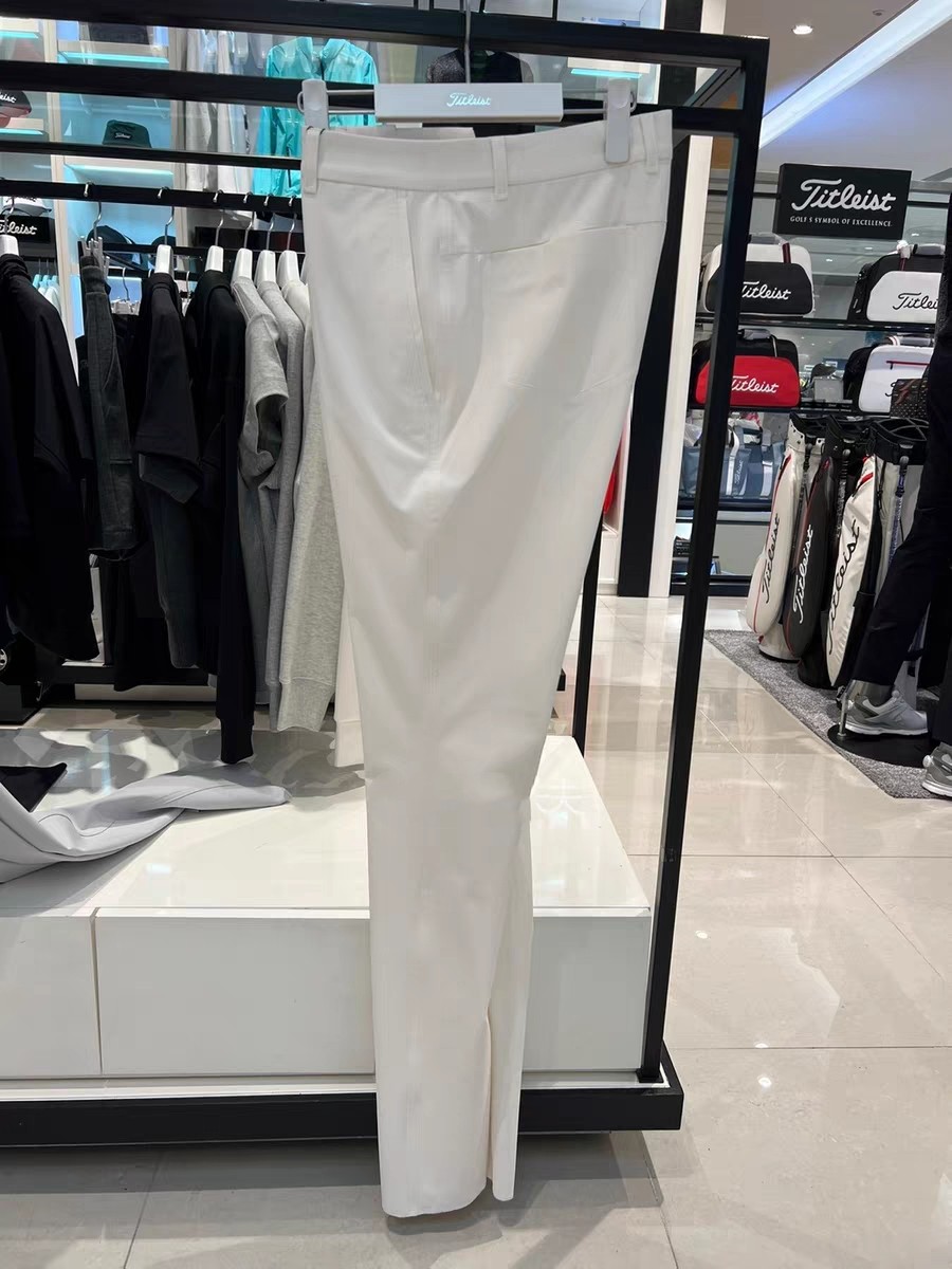 타이틀리스트 감성이 담긴 세련된 화이트 팬츠 – 필드와 비즈니스 무드를 동시에.