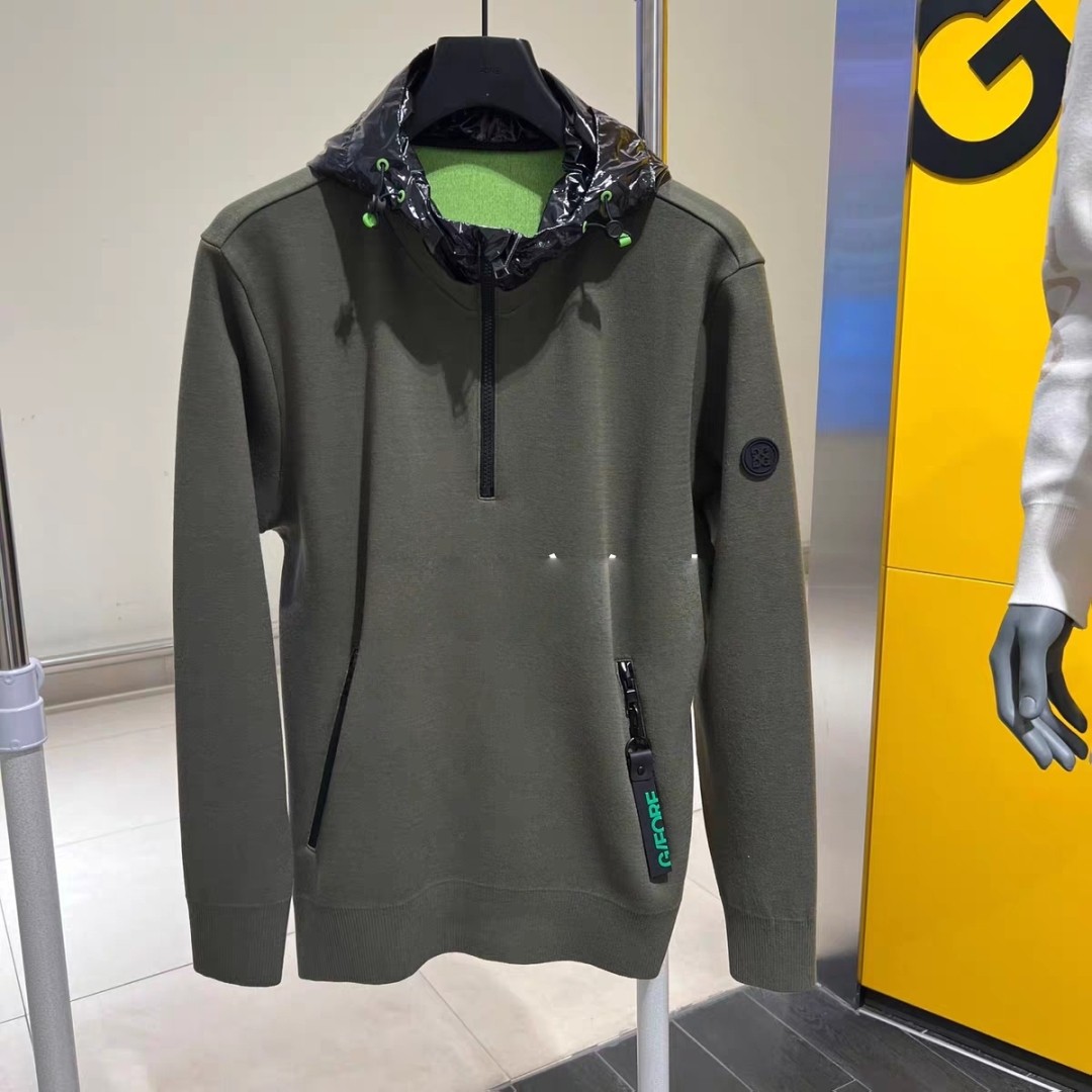 G/FORE 신상 → 트렌디한 군녹색 컬러감의 남성 전용 프리미엄 후드