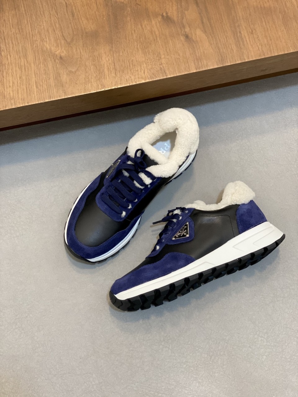 Prada 프라다 25F/W남성 퍼안감 블랙 블루 배색 스니커즈