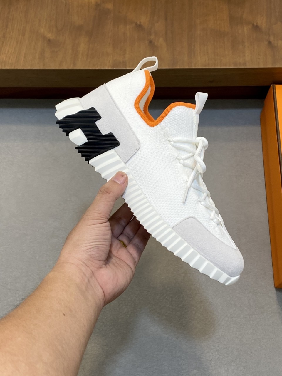 에르메스 화이트 & 오렌지 디테일 스니커즈는 순백의 화이트 베이스에 오렌지 포인트를 더해,
