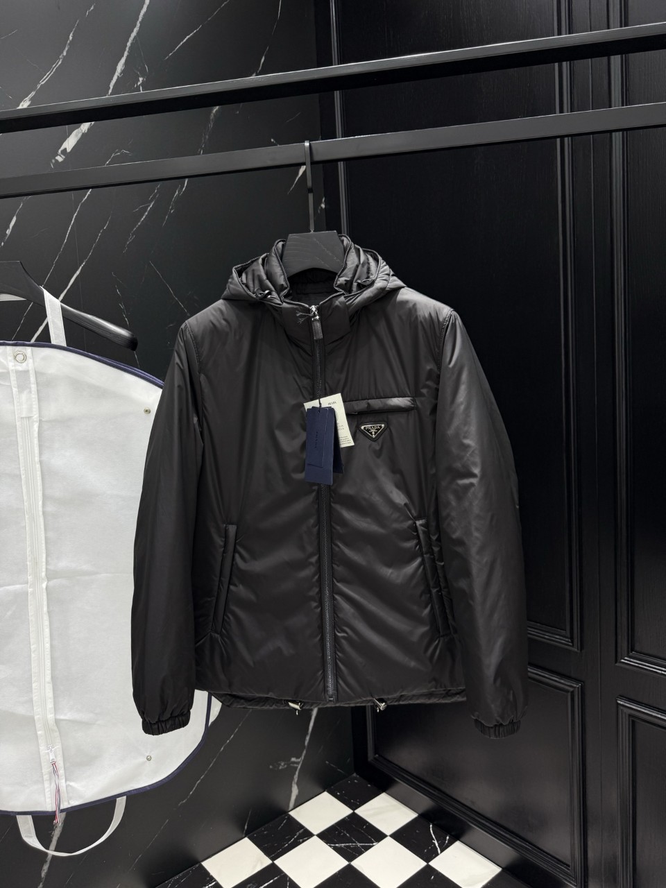 PRADA 2025 FW 화이트 덕다운 패딩 자켓 – 블랙