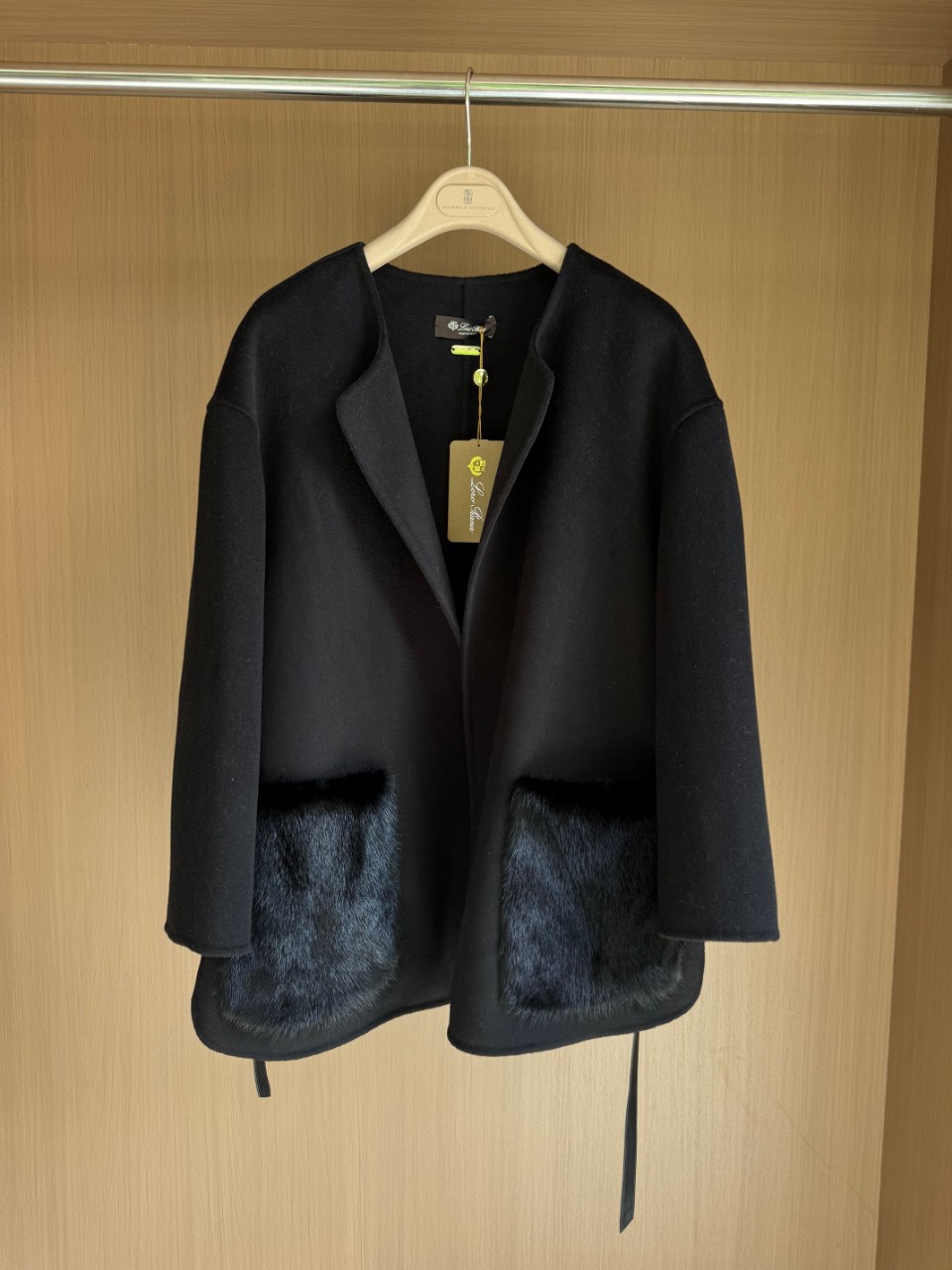 L&P 2025 FW 최고급 양모 롱코트 – 수입 밍크 퍼 포켓 디테일 (블랙)