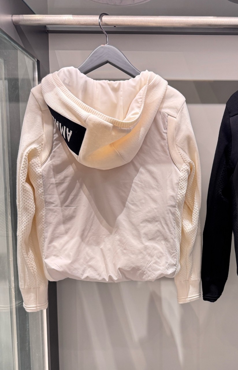 고급 원단 & 니트 후드 배색 → 입체감 있는 디자인으로 세련된 무드 연출