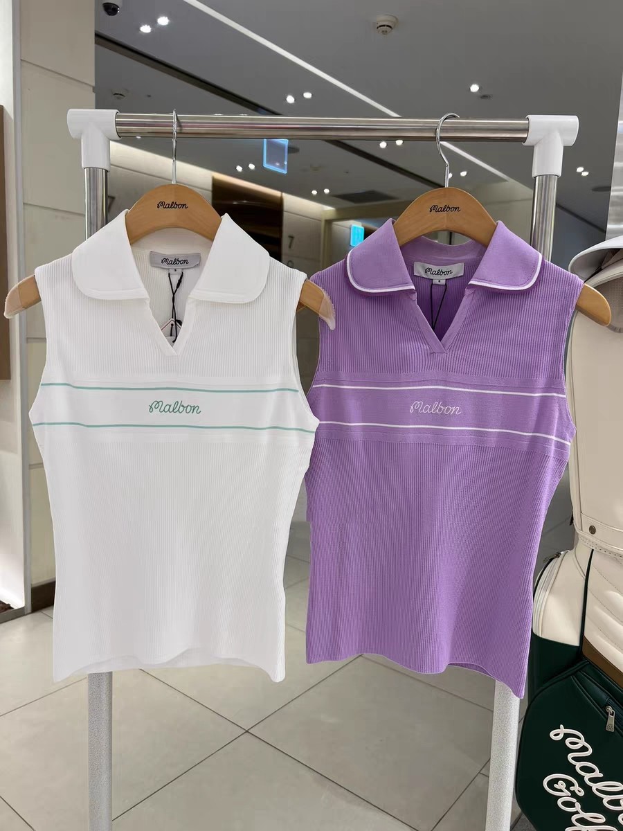 MALBON 말본 여성 하이엔드 카라 니트 슬리브리스