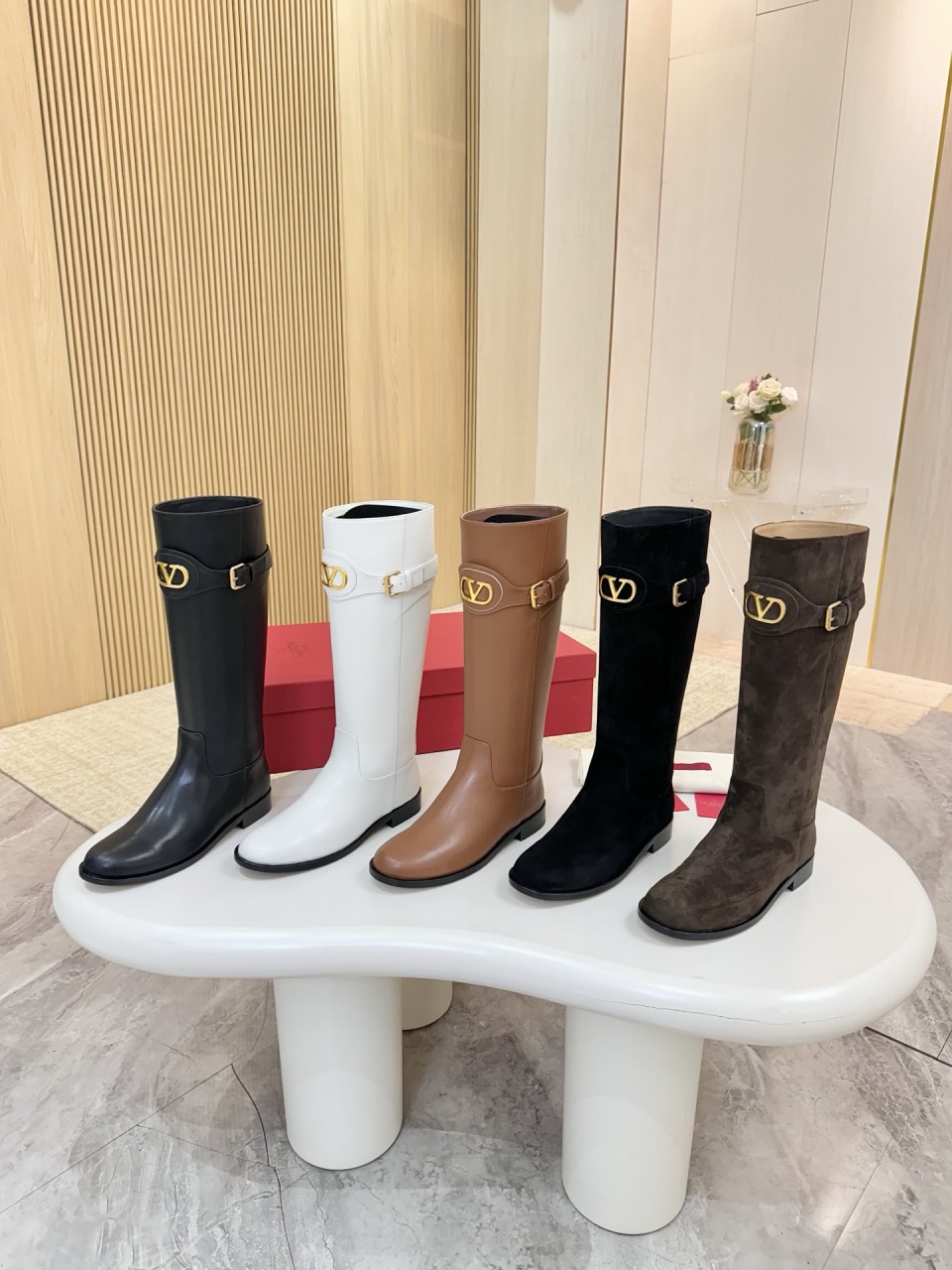 발렌티노 아이코닉 골드 V 로고 버클 장식 이탈리아 수입 소가죽 & 스웨이드 조합으로 고급스러운 질감 부드럽고 편안한 착화감, 완벽한 곡선 라인과 매장 동일 퀄리티 안감: 소가죽 + 소가죽 깔개 → 안정적 착화감 굽 높이: 약 3cm