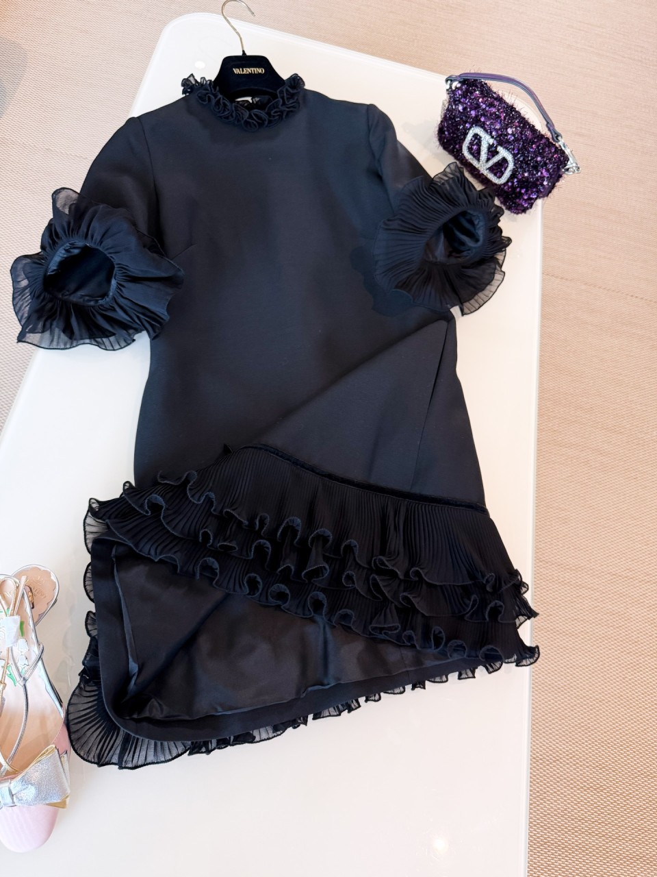 VALENTINO 25SS 블랙 러플 실크 원피스