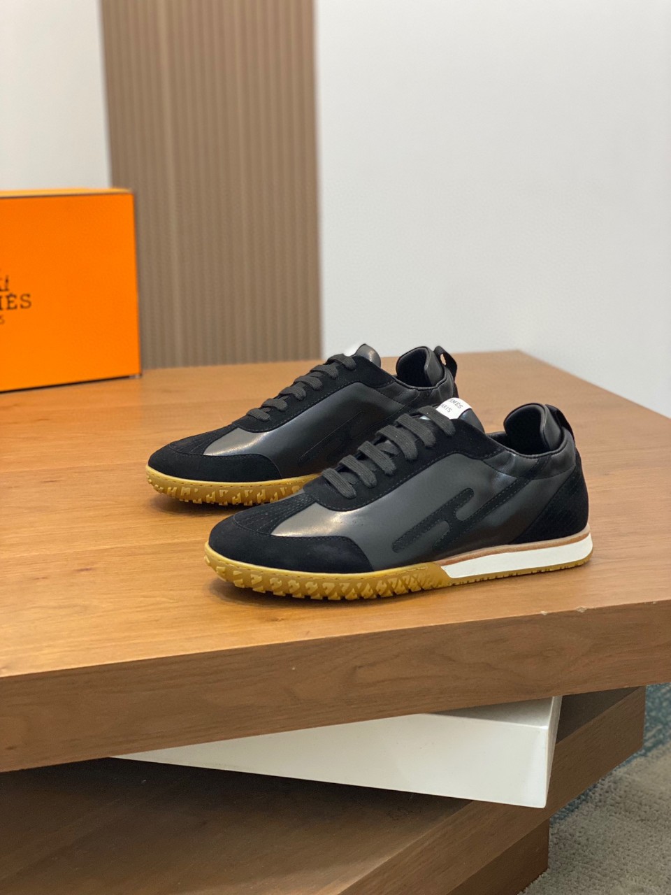 Hermès 에르메스 남성 H 디테일 레더 스니커즈 - 블랙 & H포인트
