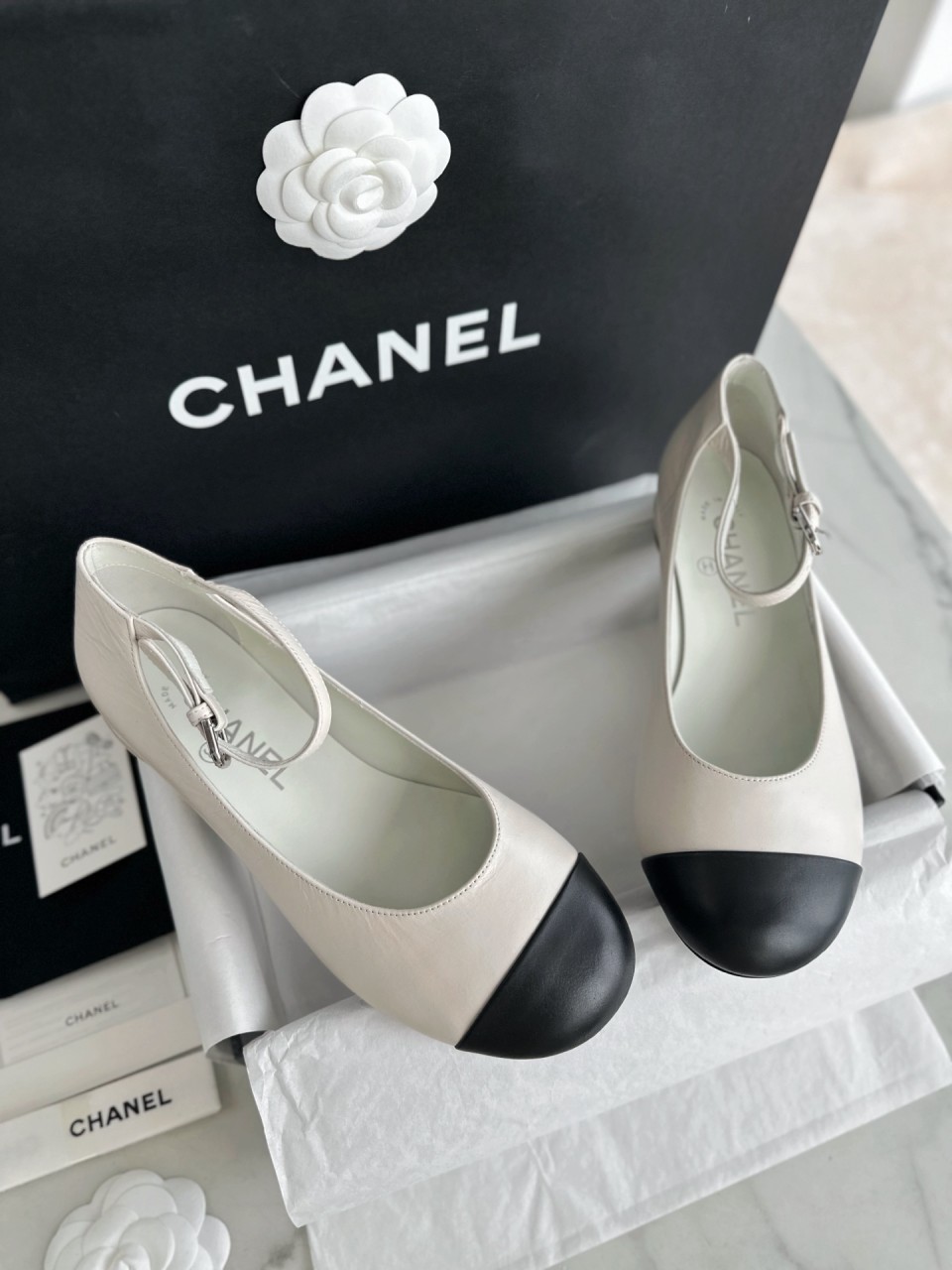 CHANEL 샤넬 화이트펄 메리제인 플랫슈즈