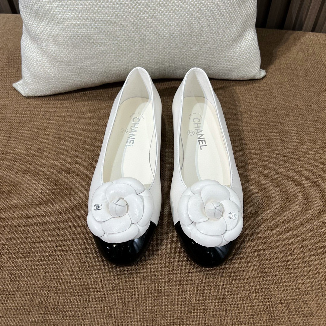CHANEL 24C 까멜리아 투톤 플랫 슈즈