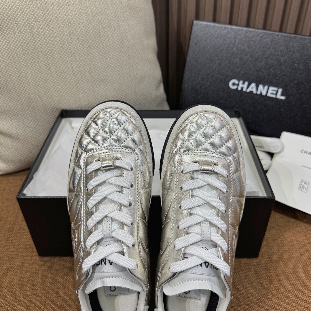 CHANEL CC 퀼팅 테니스 스니커즈[해외배송 가능상품]---PRODUCT HIGHLIGHT클래식한 CC 로고와 다이아 퀼팅 패턴이 조화를 이루는샤넬 테니스 스니커즈 라인.미니멀한 실루엣에 퀼팅 디테일을 더해캐주얼하지만 고급스러운 분위기를 완성합니다.데일리룩은 물론 세미 캐주얼 스타일까지 자연스럽게 매칭됩니다.---MATERIAL & DETAIL수입 풀그레인 소가죽 어퍼다이아 퀼팅 엠보싱 바디사이드 CC 로고 포인트쿠셔닝 인솔 적용내마모성 러버 아웃솔---DESIGN POINT클래식 + 스포츠 무드 믹스 디자인슬랙스, 데님, 원피스 모두 매칭 가능발볼 편안한 안정적인 라스트가볍고 데일리 착용에 최적화---SIZE35 – 40---판매가24---제품문의 (아래 고정 · 주소형태)The mirror카카오톡 오픈채팅 : https://open.kakao.com/o/s1h2cybi