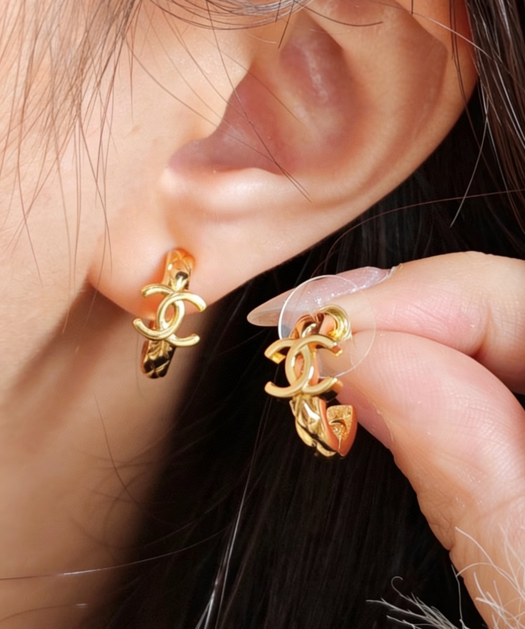 더블 CC 로고가 돋보이는 샤넬 귀걸이입니다.