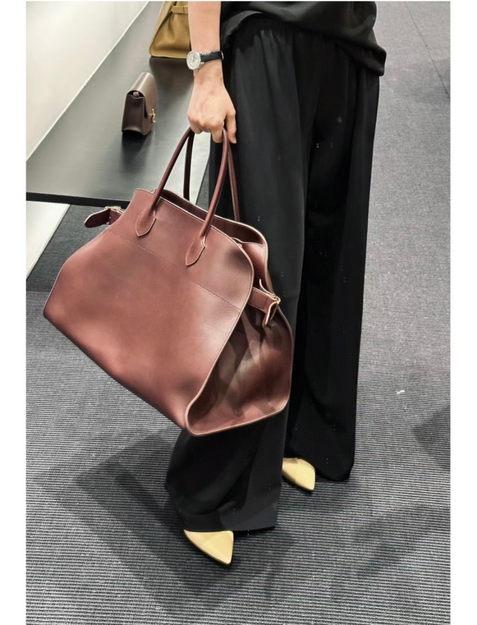 더 로우 마고17 (THE ROW Margaux 17)더 로우 Margaux 17 시리즈는극도로 절제된 디자인 안에 브랜드의 본질적인 고급스러움을 담아낸 모델입니다.로고나 프린트 없이도 완성도가 느껴지는 깔끔한 라인과 구조감,전통적인 닥터백 실루엣을 기반으로 한 안정적인 형태가 특징입니다.송아지 가죽과 스웨이드 등 다양한 소재 선택이 가능하며,질감과 마감에서 확실한 차이를 느낄 수 있습니다.넉넉한 사이즈와 단정한 외형으로실용성과 스타일을 모두 만족시키는 아이템이며,출근룩부터 여행, 데일리까지 폭넓게 활용 가능합니다.볼수록, 사용할수록 만족도가 높아지는 더 로우의 대표 라인입니다.---모델 정보모델명: Margaux 17사이즈 안내바닥 길이 43cm바닥 폭 24cm높이 30cm