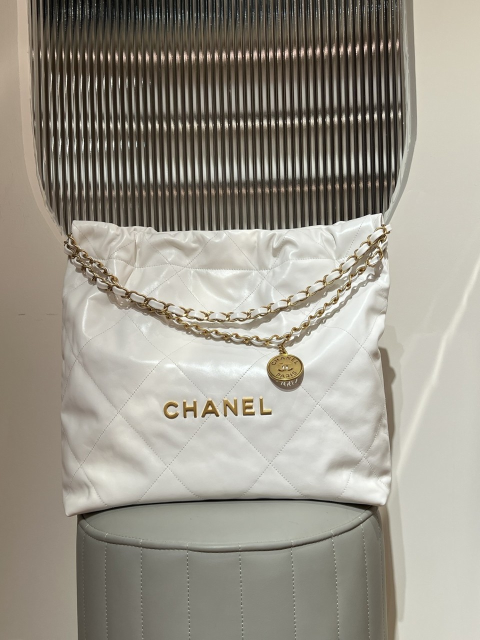 (지존샵) 샤넬 22 백 미디엄 (화이트 · 앤틱 골드 하드웨어)(CHANEL 22 Bag – Medium)샤넬의 대표 라인인 22 Bag 중 미디엄 사이즈 모델로,부드럽게 흐르는 실루엣과 퀼팅 디테일, 체인 스트랩이 조화를 이루는 디자인입니다.전면 CHANEL 레터링 로고와 체인 참 디테일이 포인트로 더해져캐주얼하면서도 고급스러운 무드를 동시에 연출합니다.---✔ 제품 정보제품명: 샤넬 22 백 (미디엄)사이즈: 가로 39cm × 세로 42cm × 폭 8cm소재: 카프스킨(소가죽)→ 순도 높은 색감과 안팎으로 자연스럽게 비치는 질감,섬세하고 부드러운 촉감이 특징컬러: 화이트하드웨어: 앤틱 골드 톤 메탈디자인 특징:소프트한 쉐입과 퀼팅 패턴드로우스트링 구조체인 숄더 스트랩전면 CHANEL 레터링 로고 & 체인 참 디테일카프스킨 특유의 자연스러운 윤기와 컬러 깊이 표현체인 무게감, 로고·참 디테일 마감 정교착용 시 자연스럽게 떨어지는 핏 유지실사 기준 전체 밸런스 완성도 우수---✔ 활용도넉넉한 수납의 데일리 숄더백캐주얼·세미포멀 스타일 모두 매칭사계절 활용 가능한 화이트 컬러 포인트---