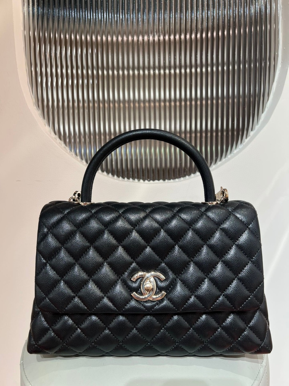 지존샵 CHANEL Coco Handle Flap Bag 29cm(샤넬 코코 핸들 플랩백 29)샤넬 클래식 라인의 우아한 탑핸들 디자인이 특징인코코 핸들 라지 사이즈 모델입니다.소재Grained Calfskin (캐비어 가죽)하드웨어Gold-Tone Metal사이즈약 29 × 18 × 12 cm