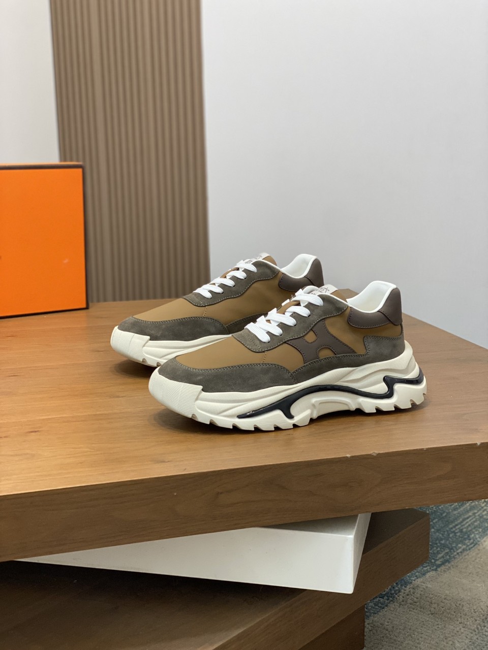 “Hermès 특유의 세련된 디자인과 프리미엄 가죽 소재가 결합된 Hugo 스니커즈.