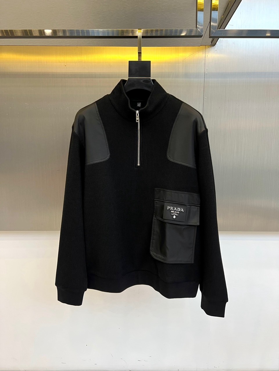 Prada 프라다 하프 집업 니트 스웻셔츠 – 블랙
