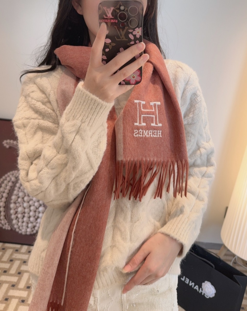 HERMES 에르메스 클래식 더블페이스 머플러 (브릭브라운)
