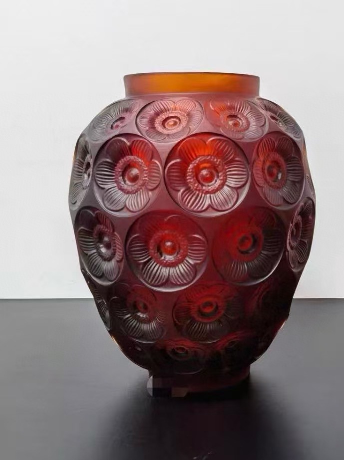 DAUM / LALIQUE 아트 크리스탈 화병 (레드 플라워 패턴 오브제)