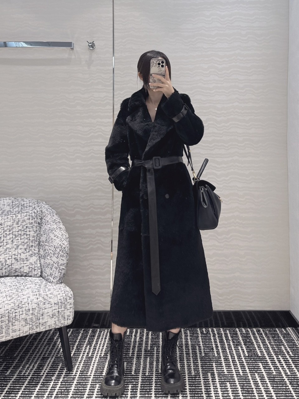 RalphLauren 랄프로렌 2025 FW 스페인산 양모 & 가죽 믹스 벨티드 롱코트 ..