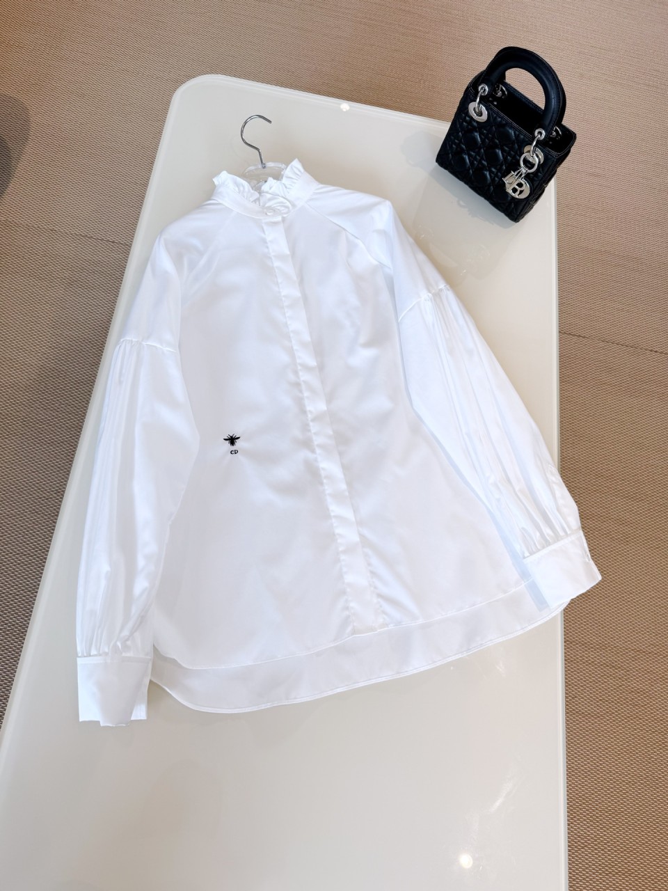 디올 차이나넥 퍼프소매 오버핏 화이트 셔츠