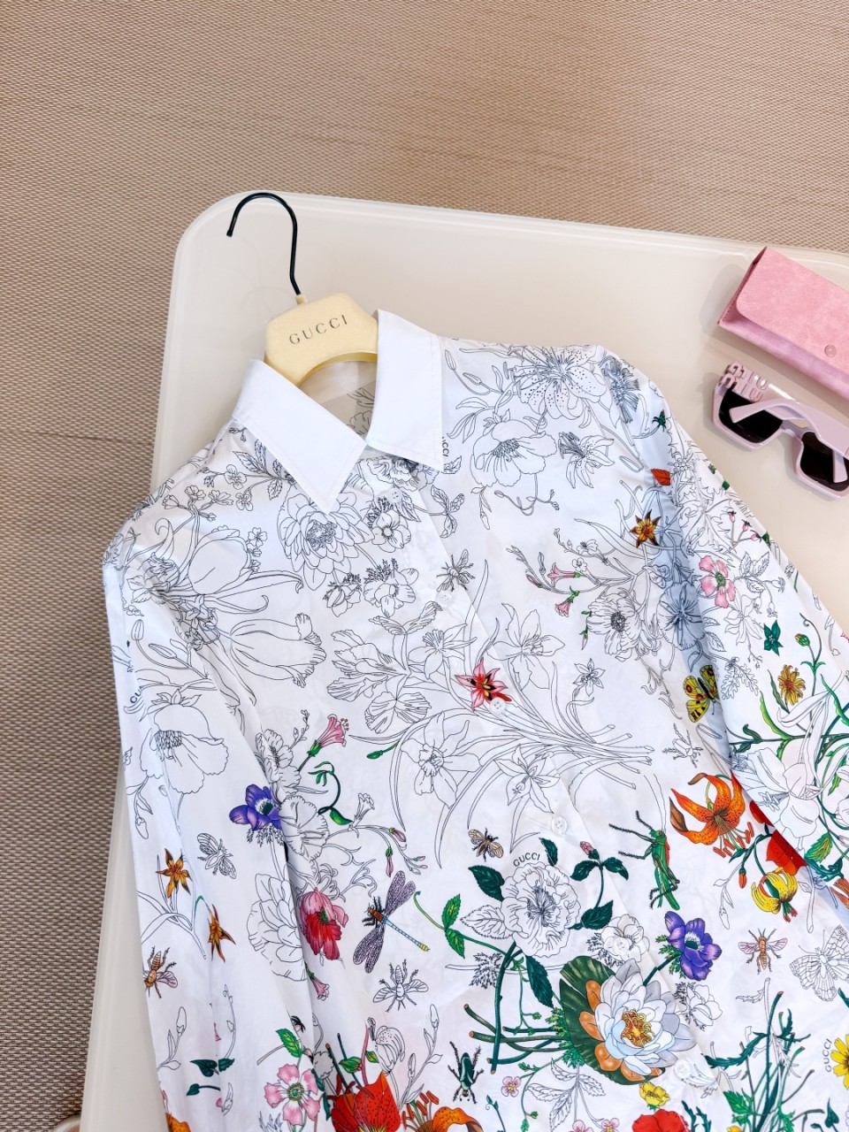 GUCCI 구찌 릴리 플라워 코튼 셔츠