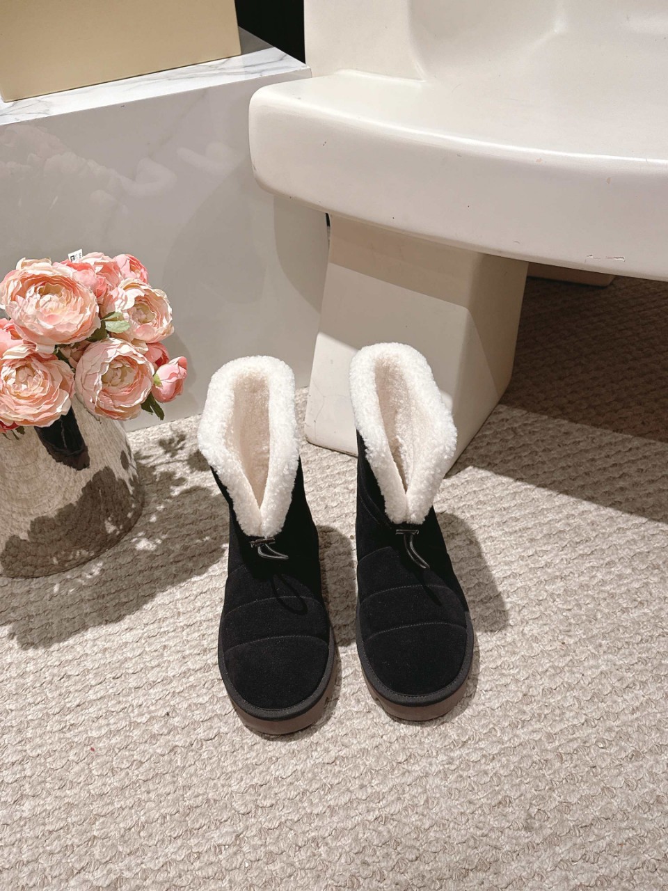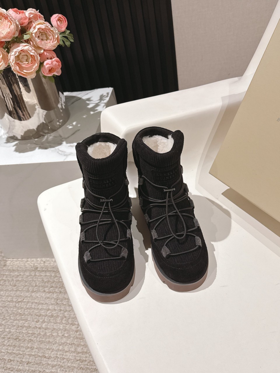 Brunello Cucinelli 브루넬로 쿠치넬리 시어링 스웨이드 부츠 -블랙