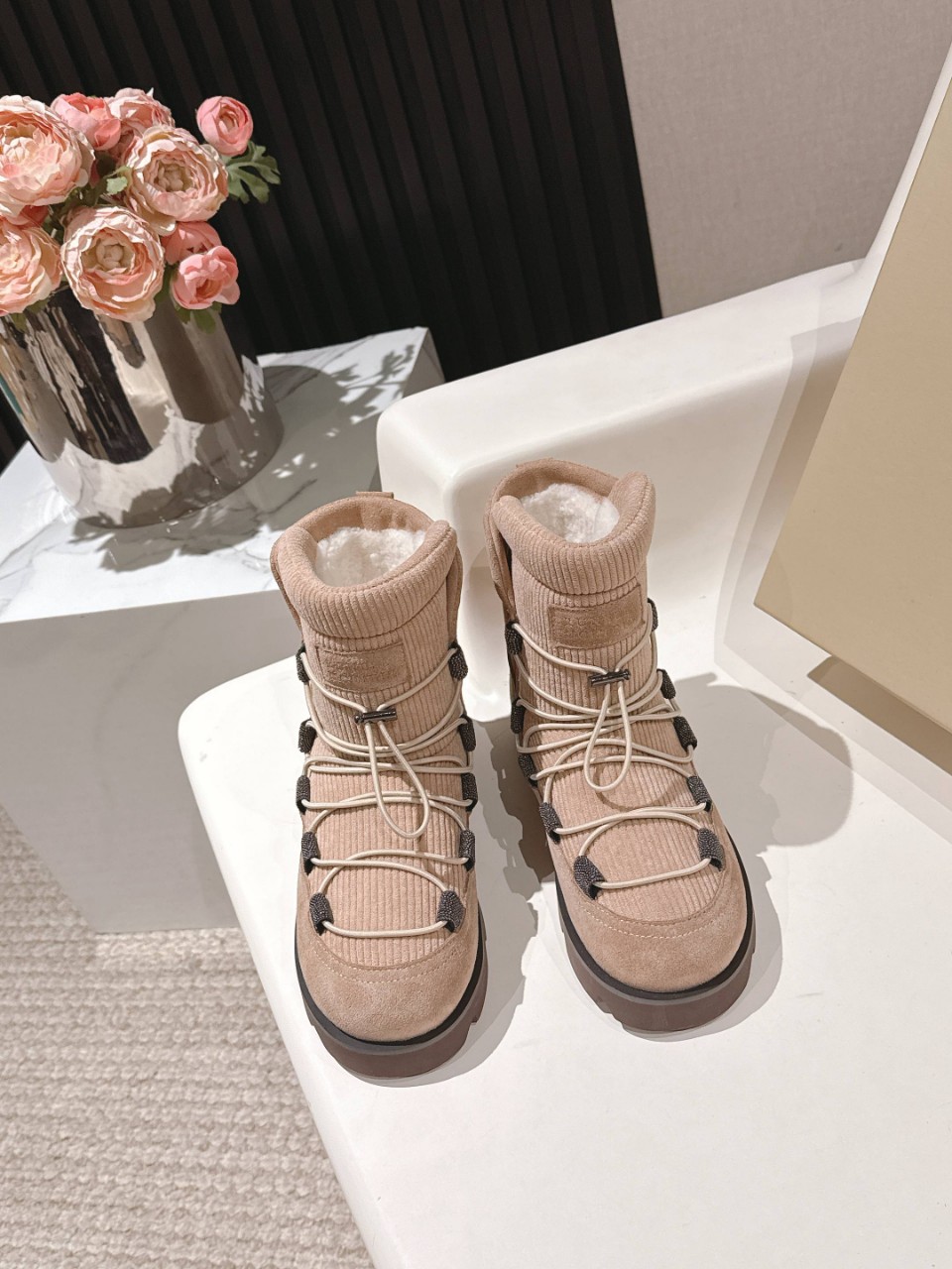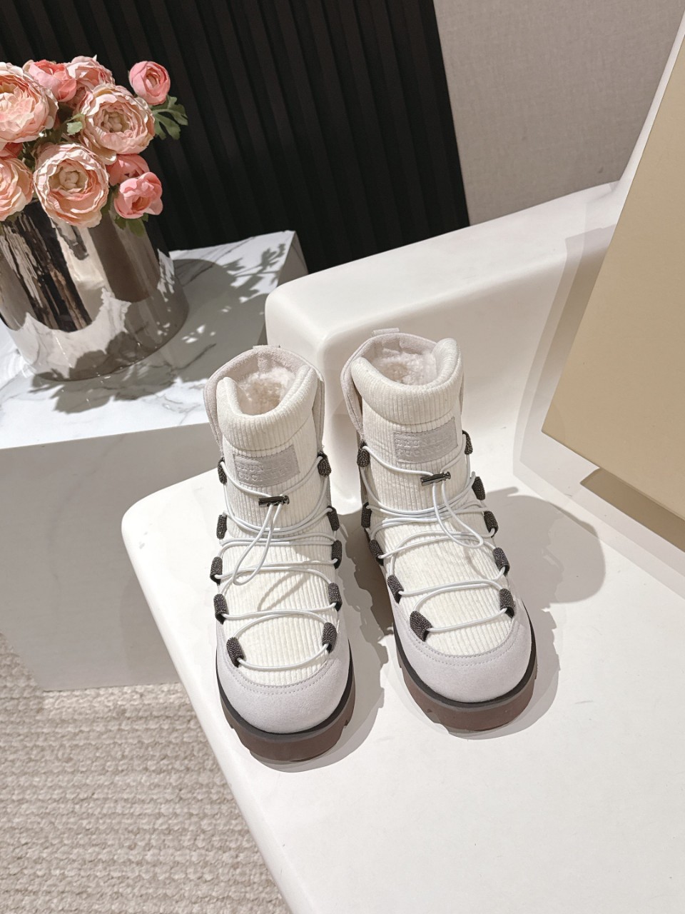 Brunello Cucinelli 브루넬로 쿠치넬리 시어링 라이닝 레이스업 스노우 부츠 ..
