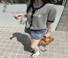 셀린느 린넨 블렌드 반팔 니트 가디건,