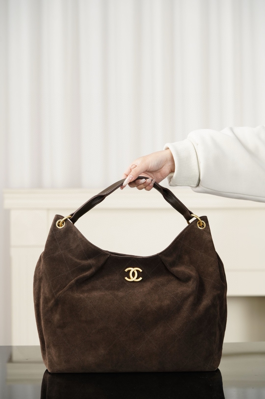 (팬더샵) Chanel 샤넬 26C 스웨이드 호보 맥시백 브라운