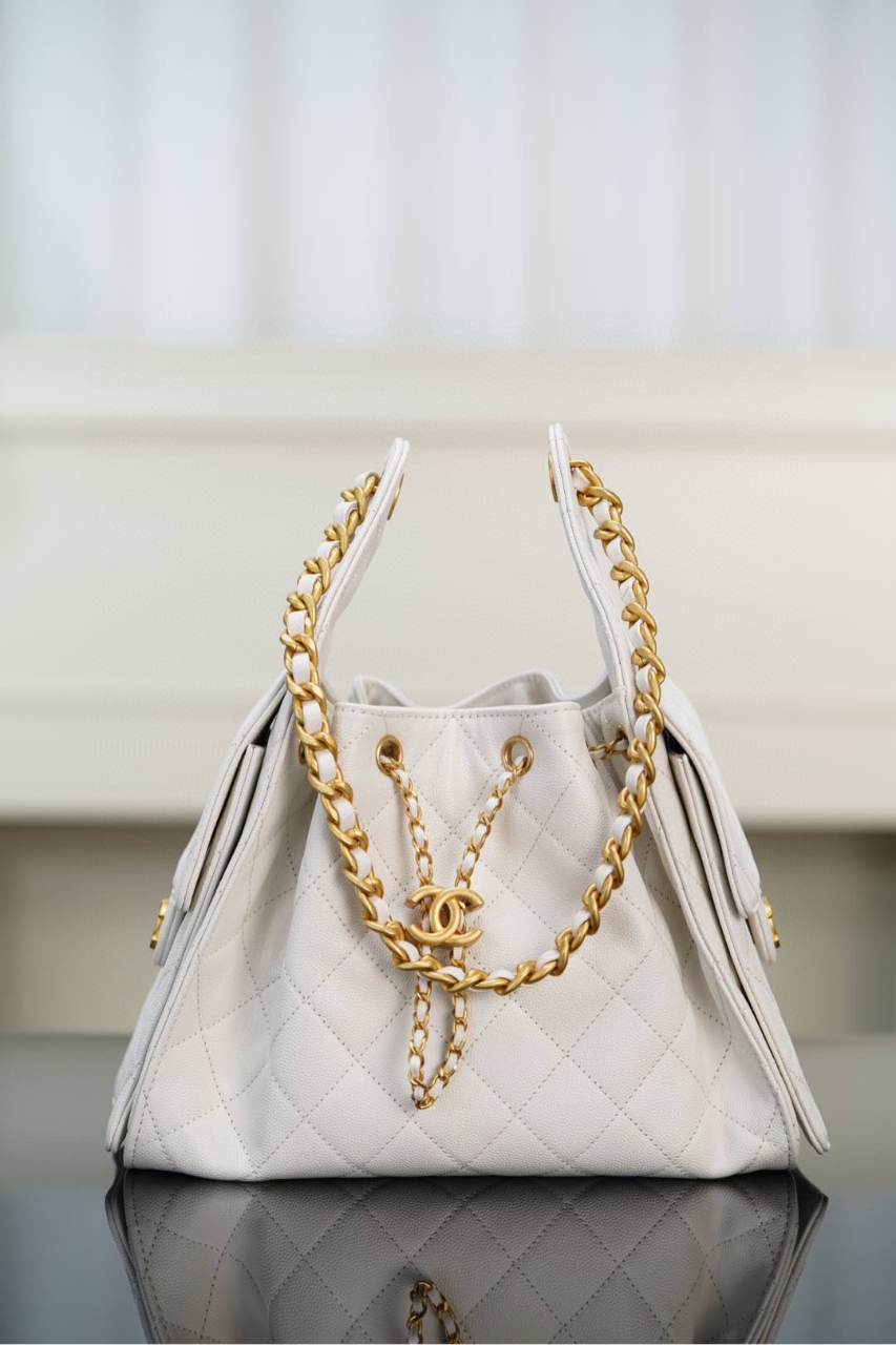 (팬더샵) Chanel 샤넬 25 스몰 호보 버킷백 화이트 금장
